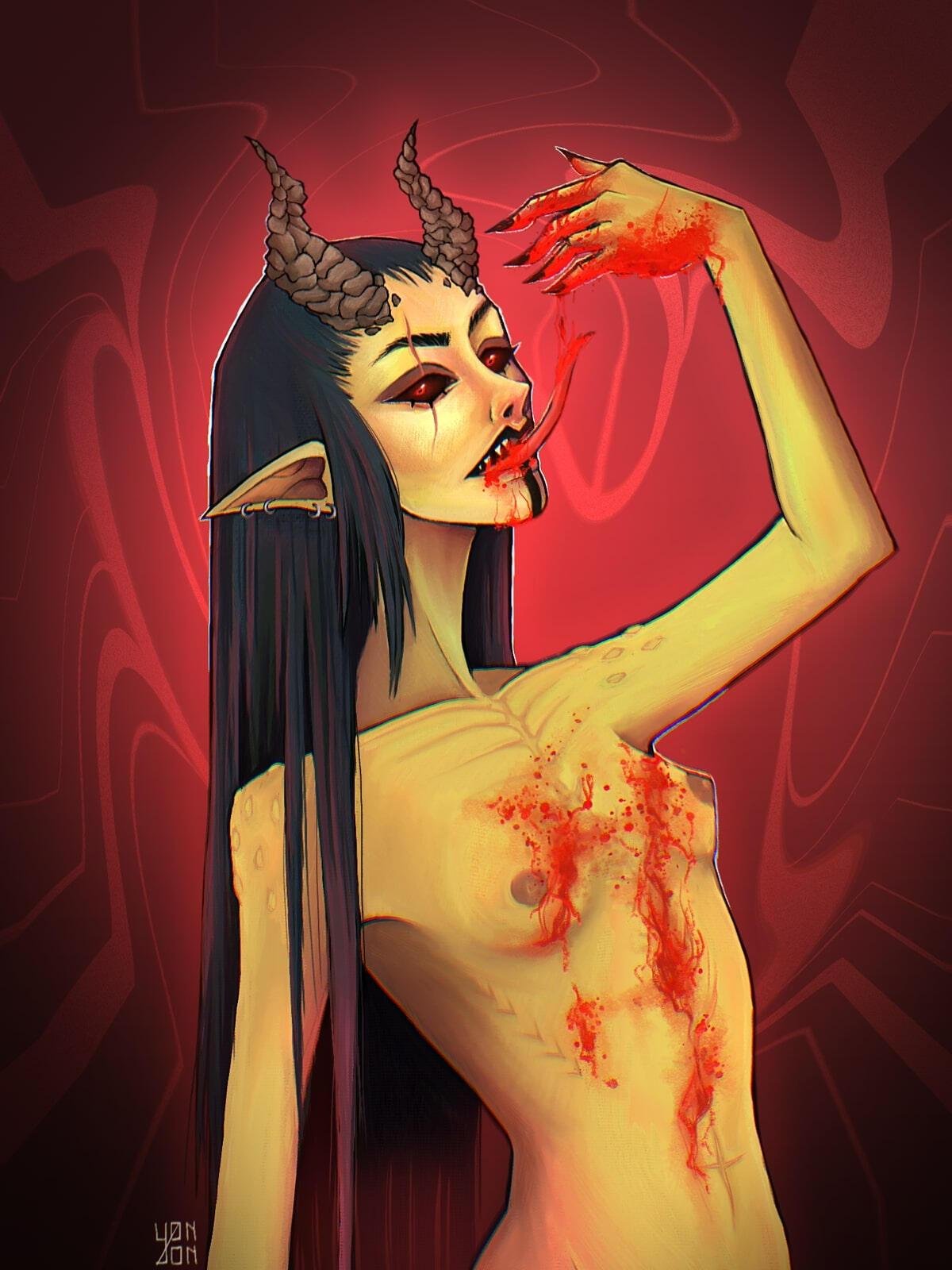 • You agree to never use the commissioned piece as non-fungible tokens (NFT), nor to use it or edit it in any generative AI. If you try to, a demon will haunt you everytime you go to the toilet for the rest of your days.